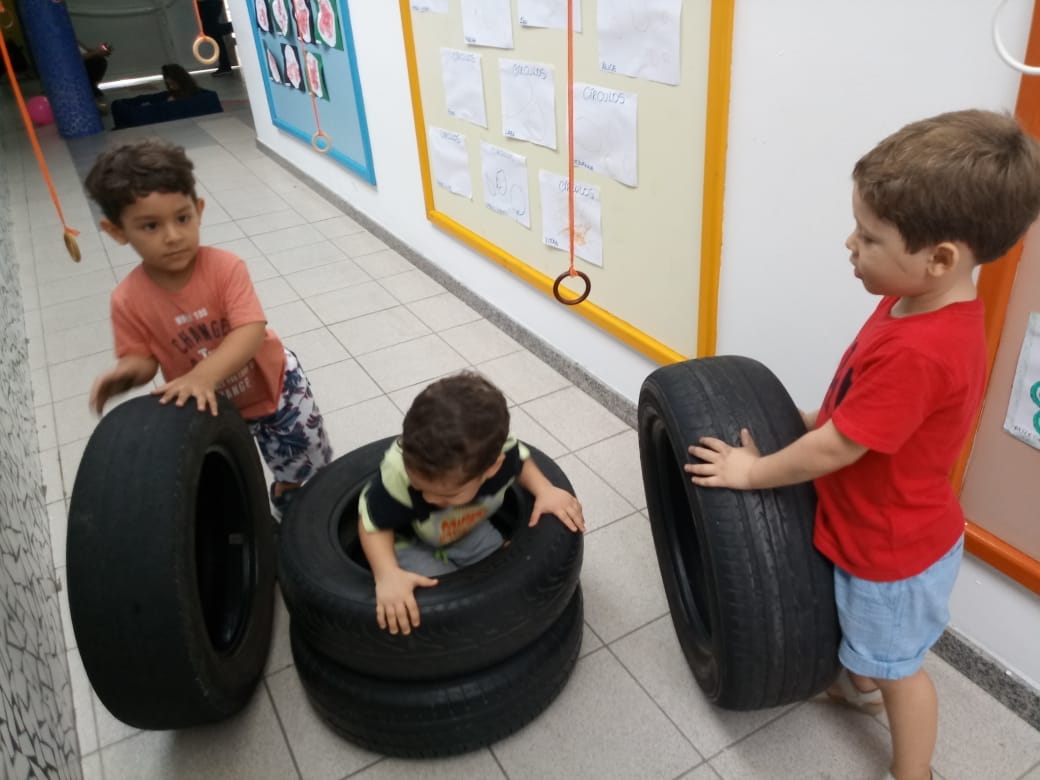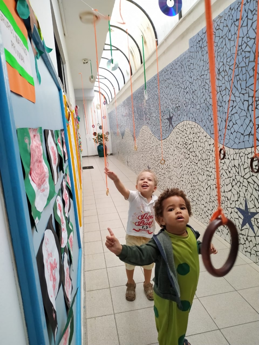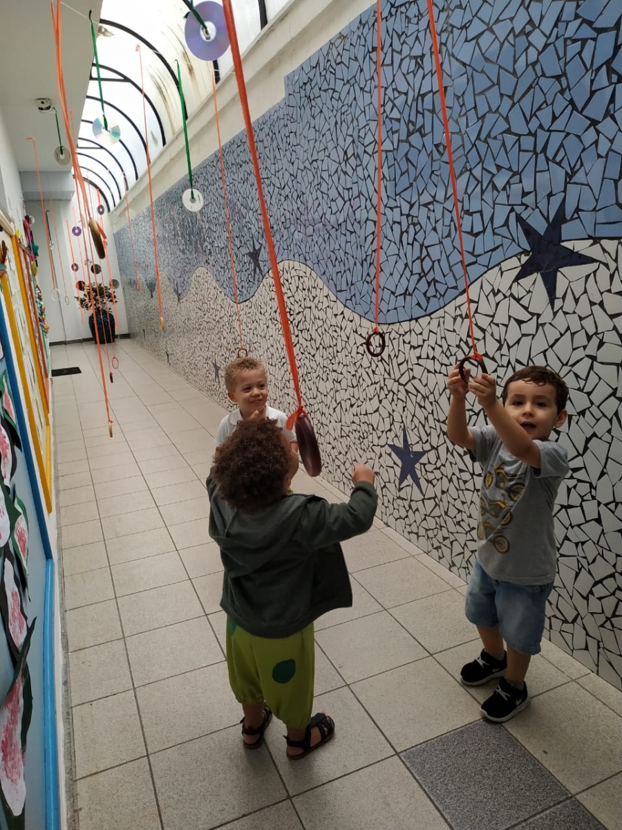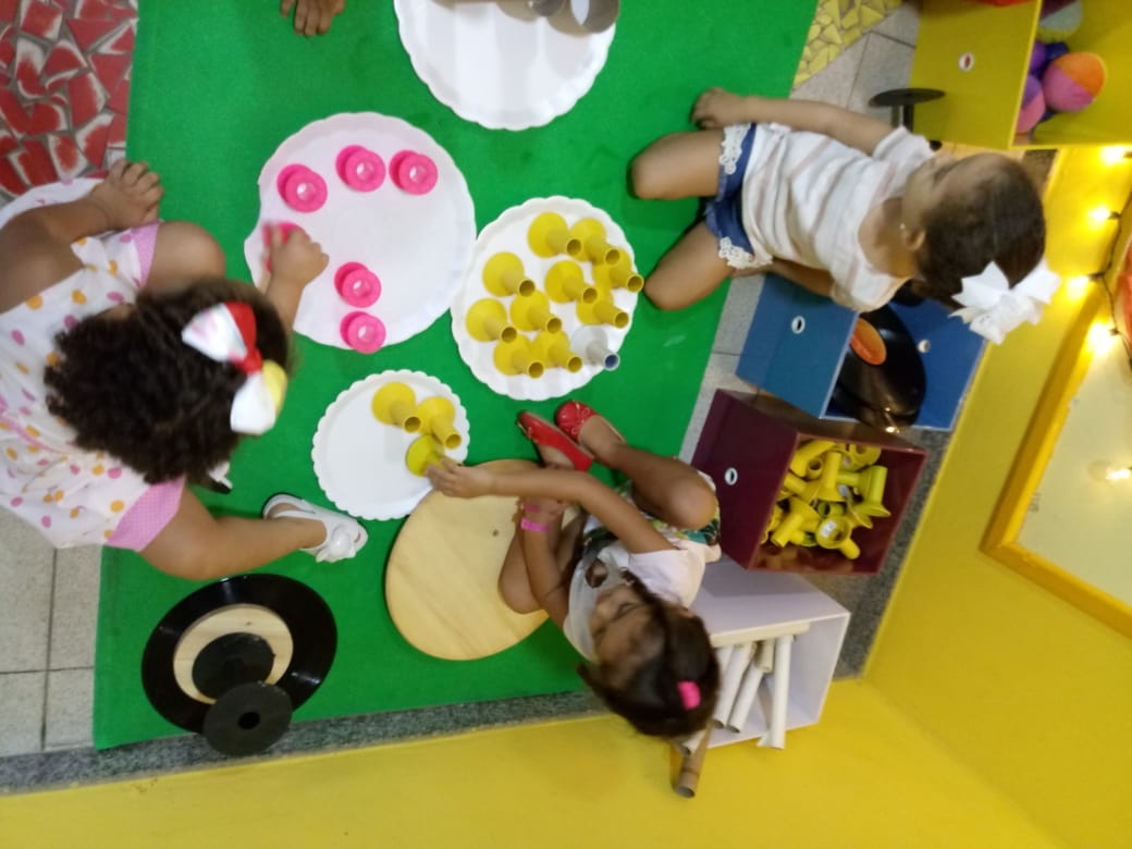Olhares atentos e curiosos, aos poucos as crianças foram escolhendo os materiais, percebendo os detalhes e descobrindo suas possibilidades de exploração.