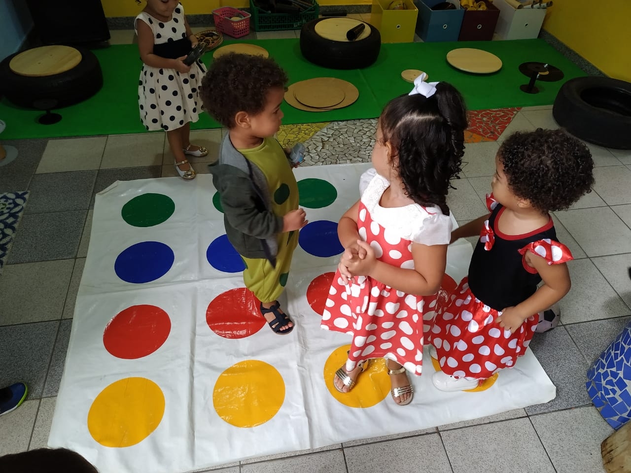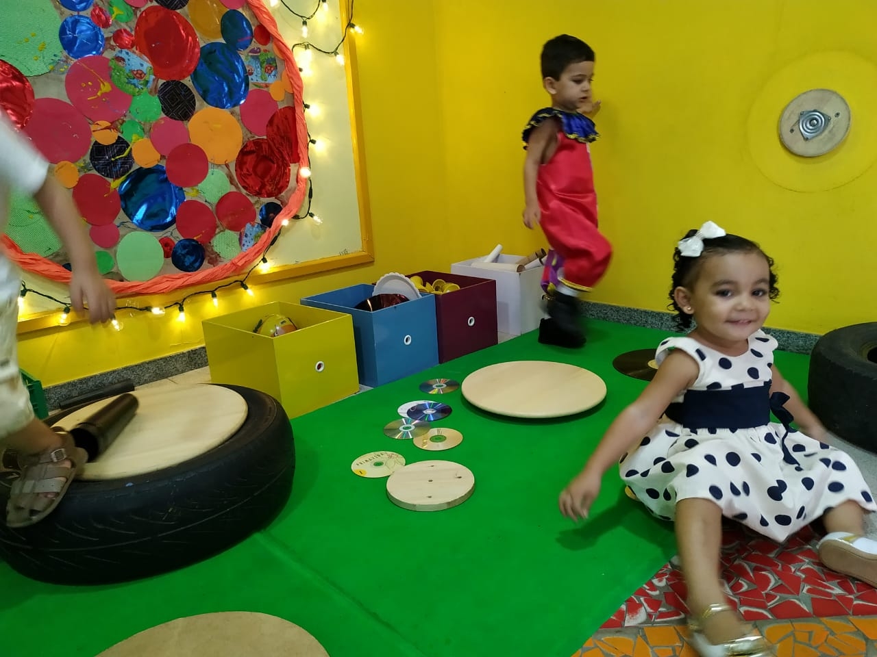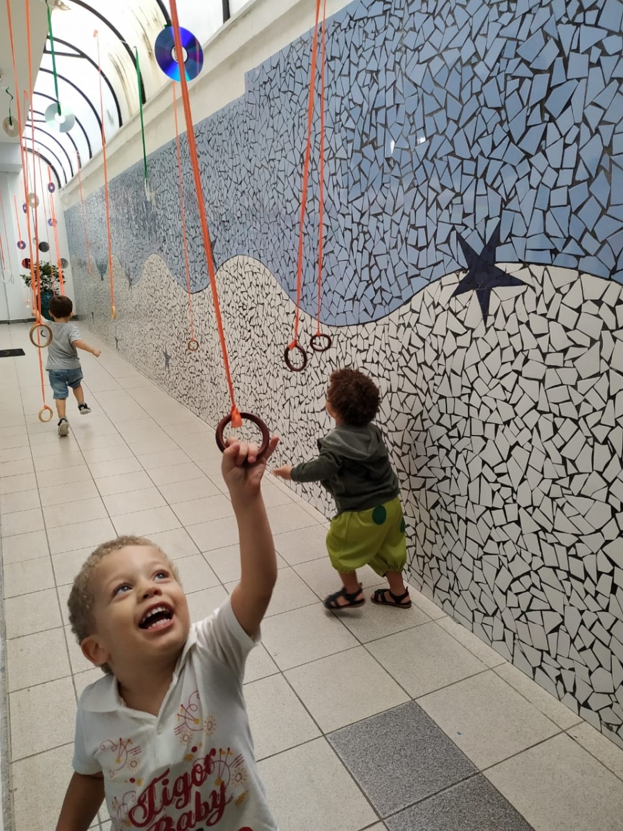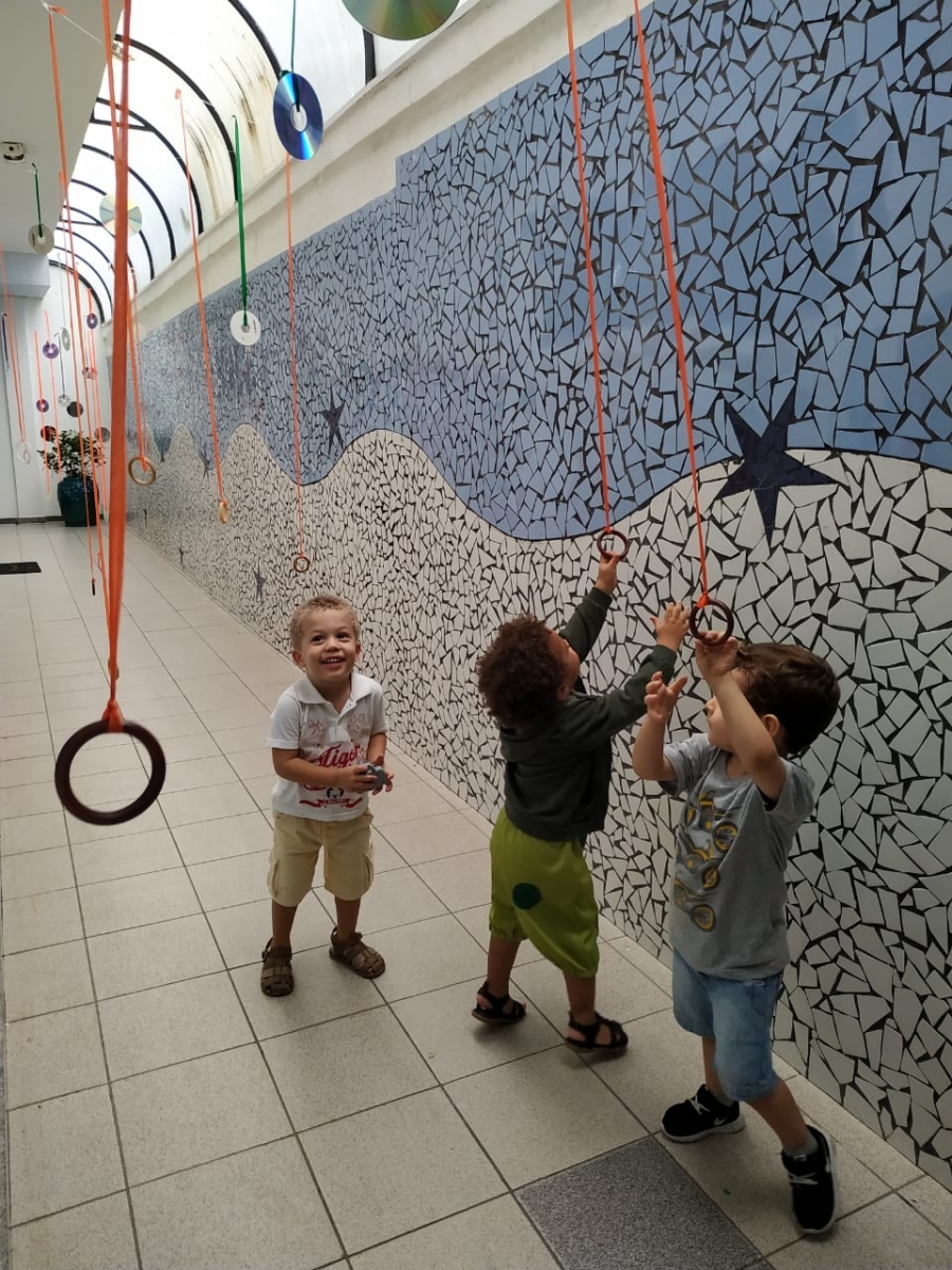 Olhares atentos e curiosos, aos poucos as crianças foram escolhendo os materiais, percebendo os detalhes e descobrindo suas possibilidades de exploração.